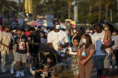 People walk through the 626 Night Market at Santa Anita Park in Arcadia on July 9.(Brian van der Brug / Los Angeles Times). LA now has returned to a mask mandate.
