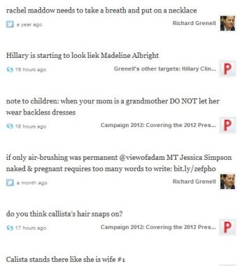 Grennell’s not the only oddball on board. Robert Bork–you remember him– is advising Romney on the Supreme Court and the Kansas Secretary of State–rabidly anti-immigrant–is one of those guys that makes Hispanics crazy-go-nuts is the big adviser on immigration law. However, the Romeny camp is walking the title back a bit.