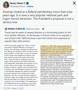 This is from Ed Mazza writing for HuffPo. This sounds a lot like his real estate deals to me. “‘Clearly Unhinged’: Critics Sink Trump’s ‘Asinine’ Plan To Reopen Alcatraz Prison. The president wants to turn the site back into a penitentiary despite the fact that it would cost a fortune.”