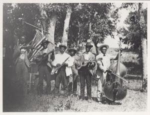 Juneteenth band. Photograph by Grace Murray Stephenson of celebrations in Eastwoods Park, Austin, 1900. — Source