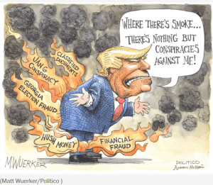 Let’s start with the challenge to our judicial system. This analysis is provided by Jose Pagliery, writing for The Daily Beast. “Trump Has Found a Dangerous Workaround to Gag Orders. Donald Trump will have a number of opportunities to violate gag orders in the coming months. He may have just found a dangerous loophole.”. Who among us is not frustrated by the lack of our laws to shut this man up as he threatens everyone in sight?