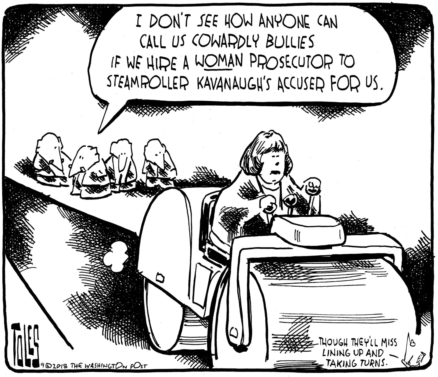 Who can say whether Trump’s apparently unbridled, even unhinged, display of id amounted to just that? Or to a free-form, last-ditch effort to defend the nomination on the eve of crucial testimony from Ford and Kavanaugh before the Senate Judiciary Committee on Thursday? Or to a calculated trial balloon for withdrawing it (“I could pick a woman, and she could have charges made from many years ago also,” he said at one point)? Or to some combination of all of the above? The assessment of Nicolle Wallace, the former George W. Bush and John McCain aide, was succinct, and indisputable.