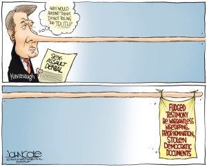 Yesterday during his deranged press conference, Trump seemed to suggest that he could decide to dump Kavanaugh. But he was all over the map in his embarrassing, manic performance. Todd Purdum summarizes Trump’s 81-minute rant at The Atlantic: President Trump’s Surreal News Conference Didn’t Do Kavanaugh Any Favors.