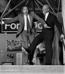 The show then turned to the politics of today. “Bush” boasted that his approval ratings are at an all-time-high, referring to recent news that his favorability has drastically increased since he left office. (When Bush left office, he was saddled with a dismal 33% favorability rating.) Ferrell then joked, “That’s right. Donny Q. Trump came in, and suddenly I’m looking pretty sweet by comparison. At this rate, I might even end up on Mount Rushmore, right next to Washington, Lincoln and I want to say, uh, Kensington?”