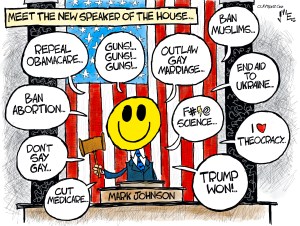 Johnson is an opposition researcher’s goldmine. Even over the weekend, news reports and video clips steadily trickled out exposing the new speaker for embracing views that are far out of step with mainstream America.