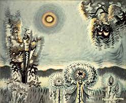 So, that’s enough weirdness for today. I’ve had enough weirdness since the weekend. The reason I’ve chosen the art of Charles E. Burfield is because of his weirdish take on landscape. We’ve got marsh fires down here that stink up the place and have brought us “Super Fog.” Yes, that’s the technical word for it. It’s been an eerie weekend of thick black fog and nasty smells. You may remember me writing this blog from a small university on the other side of the river for a few years. You may also remember me complaining about how extending daylight savings time made the morning commute seem like a midnight funeral. Well, the combination of no sunshine in the morning and Super Fog messed up that morning commute for many folks. Today, it cost some of them their lives.