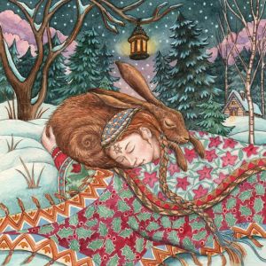 Brigit hugs one of her beloved hares