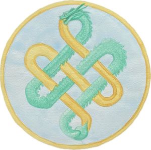 The Sky Dancing banner headline uses a snippet from a work by artist Tashi Mannox called 'Rainbow Study'. The work is described as a" study of typical Tibetan rainbow clouds, that feature in Thanka painting, temple decoration and silk brocades". dakinikat was immediately drawn to the image when trying to find stylized Tibetan Clouds to represent Sky Dancing. It is probably because Tashi's practice is similar to her own. His updated take on the clouds that fill the collection of traditional thankas is quite special.