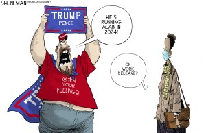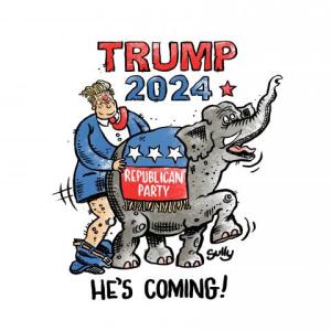 Can the courts, the political process, and the media defang this enemy of democracy? And how? Thankfully, political cartooning already acts asymmetrically.