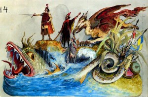 As I’ve mentioned before, the artists who design and construct the parade floats are simply amazing.Design for Proteus Parade Float, 1906, by Bror Anders Wikstrom