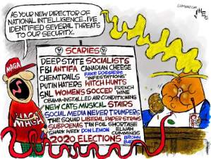 It’s another terrifying Tuesday in the American apocalypse. During his insane inauguration speech, Trump said he was going to end American carnage. Instead he has brought us to our knees as a country as we endure a pandemic and economic hardship with almost no help from the federal government. Trump has hollowed out or destroyed nearly every important American institution–the State Department, the Justice Department, the CDC, the Supreme Court, the federal court system, the Defense Department leadership, the Department of Homeland Security and FEMA. And now he’s working on taking control of the intelligence community.