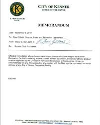 The Kenner memo says that, effective immediately, all purchases of clothing, shoes, athletic equipment or any other athletic equipment by booster clubs operating at city recreation facilities must be approved by Pitfield or his designee.