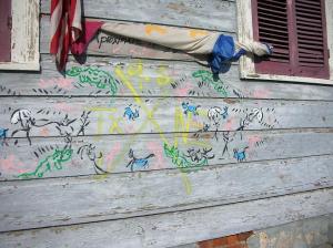 So here’s our latest little neighborhood controversy, welcome to our battle against the Grey Ghost. The Grey Ghost has decided to eliminate all of these art forms in the surrounding neighborhoods. This has started to include grafitti art that exists every where including on buildings and walls where there is the permission of its owners. He’s named the Grey Ghost because, well see the video below and you’ll get the story. Also, go take a look at an article from this week’s Times Picayune.