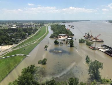 Failure of the Old River Control Structure and the resulting jump of the Mississippi to a new path to the Gulf would be a severe blow to America’s economy, robbing New Orleans, Baton Rouge, and the critical industrial corridor between them of the fresh water needed to live and do business. Since a huge portion of our imports and exports ship along the Mississippi River, a closure would cost $295 million per day, said Gary LaGrange, executive director of the Port of New Orleans, during the great flood of 2011. An extended closure of the Lower Mississippi to shipping might cost tens of billions. Since barges on the Mississippi carry 60% of U.S. grain to market, a long closure of the river to barge traffic could cause a significant spike in global food prices, potentially resulting in political upheaval like the “Arab Spring” unrest in 2011, and the specter of famine in vulnerable food-insecure nations of the Third World.
