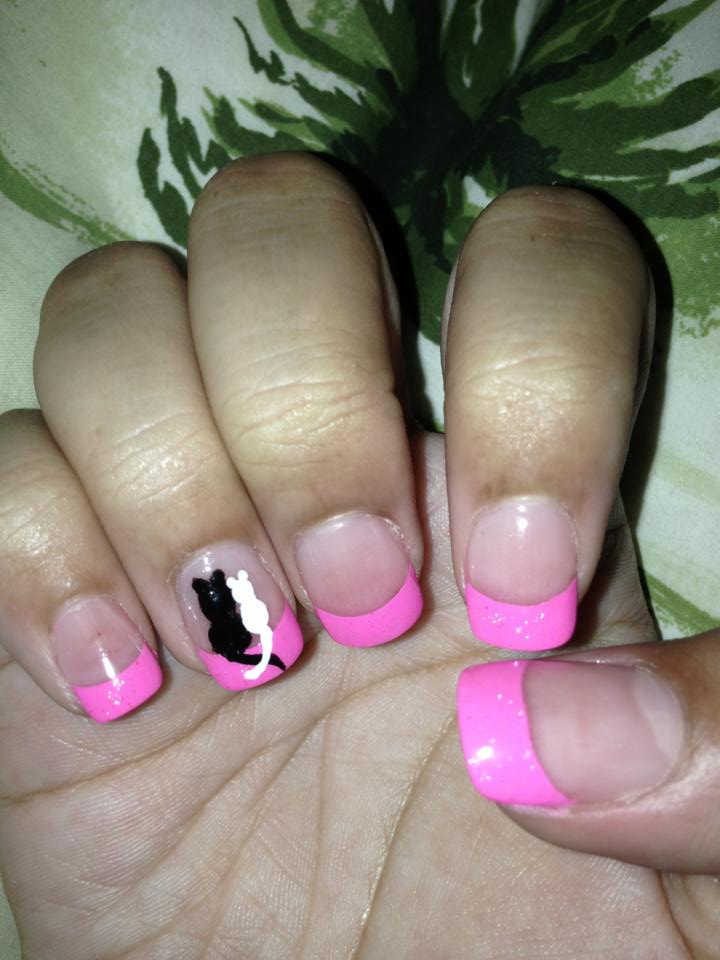 Before I end this post, just for some Caturday fun, and for purposes of smashing the patriarchy with my crazy cat lady pink-ness, here are pictures of my nails that I got done last night (click for larger view):