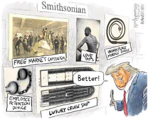Don’t forget, Trump is destroying the Smithsonian, the entire White House, and just about every check and balance enumerated by the U.S. Constitution. You may gag over the Oval Office Changes at Business Insider. His future architectural destruction is outlined in USA Today. It includes the Lincoln Bedroom, and he’s specifically interested in its bathroom. That’s a lot of gag for your buck.