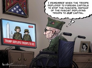 After protests broke out over Trump’s attempted takeover of the Washington, D.C. police force and his deployment of the National Guard there—which is itself a major escalation—White House deputy chief of staff Stephen Miller expressly declared that protests would be met with a surge of additional law enforcement and/or military resources. Notably, there’s been no serious effort to reassure Americans that Trump’s militarization of the city, or of Los Angeles, is rooted in benign intentions. In fact, this week Trump suggested he would personally ride through the city with the National Guard. Though he scrapped the plan, that was probably for logistical reasons, and he plainly wants all this military activity in urban centers to be seen as affirmative confirmation of his ongoing consolidation of power.