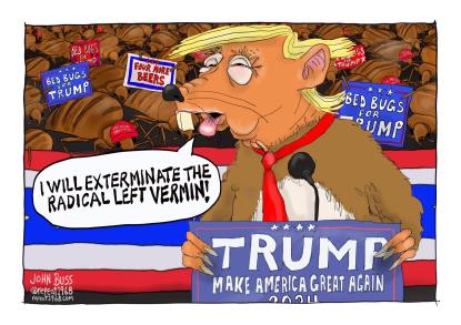 It is a distorted, warped and, at times, absurdist portrait of a nation where the insurrectionists who stormed the U.S. Capitol on Jan. 6, 2021, to deadly effect were merely peaceful protesters, and where unlucky boaters are faced with the unappealing choice between electrocution or a shark attack. His extreme caricatures also serve as another way for Trump to traffic in lies and misinformation, using an alternate reality of his own making to create an often terrifying — and, he seems to hope — politically devastating landscape for his political opponents.