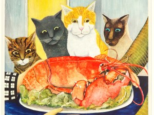 Feeding the Tortoise, Cat Looking On, by Beryl Cook