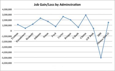 That means that the average monthly job loss during the “difficult situation” before Obama’s policies took effect was 417,000. Over the last year-and-a-half, the average monthly job gain has been 155,000.