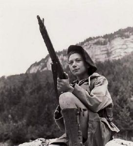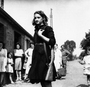 French Resistance fighter Simone Segouin; women of the Maquis; Greek partisans.
