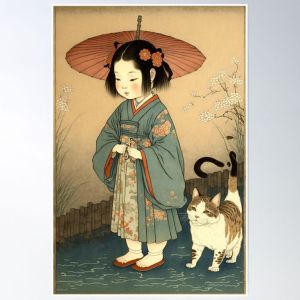 Japanese Girl with Cat, by Tsukioka Yoshitoshi