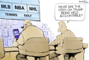Just when I thought all the Olympiad festivities were over, DonOld finds some new activities to entertain us. Lisa Needham of Public Notice describes his performance thusly: “Trump’s weekend of radical flip-flopping. It’s hard to say you’re against abortion bans when you’re literally voting for them.” His performance in pandering took on some new lows, too. My guess is there will be only the medals he produces and sells. No authentic ones.