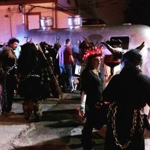 A mangled, deranged face with bloodshot eyes tops a furry black body. Giant horns curl up from his head, displaying his half-goat, half-demon lineage. Behind this terror, a dozen more stomp through the snow of the streets of Lienz, Austria, among a din of cowbell jangles. The creatures dash through the streets, chasing giggling children and adults alike, poking them with sticks and scaring some with the realization that they were naughty this year.