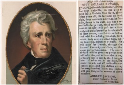 Jackson, who would become the country’s seventh commander in chief in 1829, promised anyone who captured this “Mulatto Man Slave” a reward of $50, plus “reasonable” expenses paid.