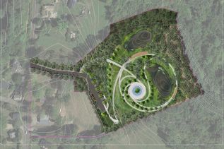 From a bird’s-eye view, the memorial renderings show a web of paths swirling inward from an expansive circle. Looping through gardens, tree groves and ponds, they join at a single point: a sycamore tree, surrounded by a reflecting pool.