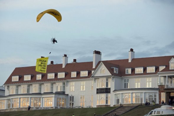 Nevertheless, a Greenpeace protester managed to breach the no-fly zone on a hang glider with a sign reading ““Trump: well below par #resist” (see photo at the top of this post). Thank you to the people of Scotland for standing in solidarity with the U.S. resistance. I’m proud of my Scottish heritage today.