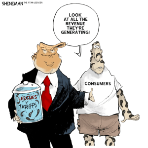 Meanwhile, in the world of bill paying and trying to live, it’s still the Economy Stupid! This is from Reuters. “How the United States is eating Trump’s tariffs.” This is reported by “Francesco Canepa and Howard Schneider.”