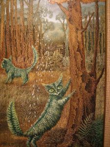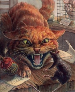Kisa the Cat carries off Ingibjorg’s Feet from the giant’s cave, from Andrew Lang’s Brown Fairy Book, 1932
