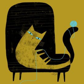 Very Introvert Cat Sitting on a Red Chair, by Nastya Ozozo