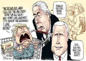 Pence is a radical. He’s also not very bright. He is, however, good at passing as a conventional human being. He also looks like the anchor to sanity compared to his unhinged boss. This is dangerous in a time when looking for safe ports is a minute by minute task.