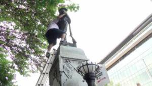 A music video director on Sunday morning (Nov. 12) temporarily placed a twice-life size statue of an African-American woman on the slab where the statue of Jefferson Davis once stood. The controversial monument to the President of the Confederacy was removed on May 11.